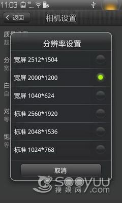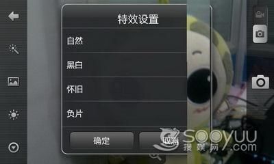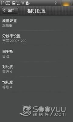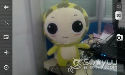 在拍照界面上,我们可一看到本机的中间位置已经有了一个自动对焦用的方块,非常实用的功能。此外在功能上,本机可以拍摄宽屏照片,而且支持对白平衡、亮度、场景等模式的设置,表现很全面。