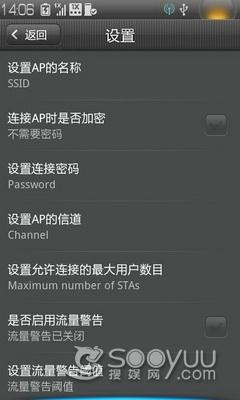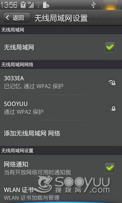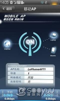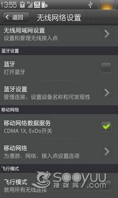 在设置界面中我们发现了本机除了支持CDMA2000的EVDO网络以外还可以连接WLAN无线局域网,并且在设置中可以调节静态IP,网络信号接收情况尚可。此外在网络方面,本机还支持移动AP。可以将手机当做无线路由器进行共享上网,表现非常全面。