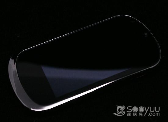 接下来看手机的正面,乐Phone采用的是目前最流行的大屏幕触摸式的设计,主屏幕是一块3.7 英寸Amoled材质的电容式屏幕,分辨率达到了WVGA(480×800),显示效果是相当出色的。