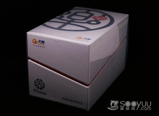 首先拿到这款手机的时候发现包装盒与之前WCDMA版本的没有太大区别,只是在盒子上我们发现了天翼的logo以及文字“中国电信定制手机”的标识。