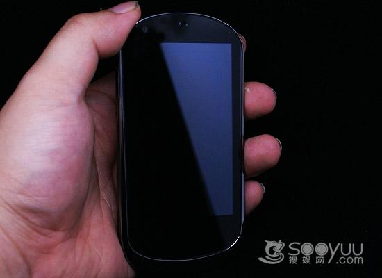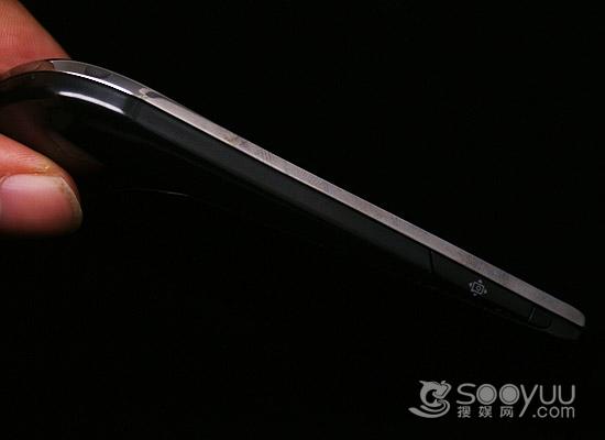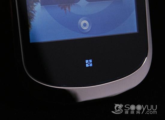 而底部乍看上去什么都没有,比苹果的iPhone还要简洁。其实没有按键也能操作,实际上是隐藏了一个感应式的触摸键的。之前在乐phone的评测中我们已经做过了详细的介绍。