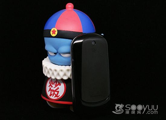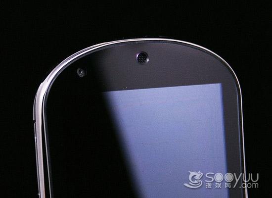 屏幕上方我们可以看到这款手机的听筒以及一个副摄像头。乐Phone支持中国电信CDMA2000制式的3G网络。而目前中国电信还没有开通视频通话功能,所以除了自拍之外还没有太大的作用。
