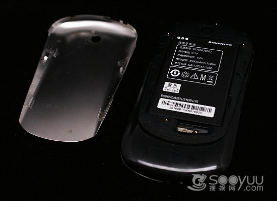 在金属后盖的下方印有联想“Lenovo”以及“樂”的logo,使手机的个性风格化更加的鲜明。 值得一提的是在电池后盖下方有一个狭长的部分其实是手机的扬声器装置,这样的设计也是别出心裁。