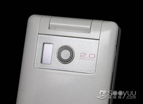在背面的顶部,我们看到了步步高i606配备了一枚200万像素的摄像头,最大可以拍摄1600×1200像素的照片,在镜头旁边并没有LED补光等以及自拍镜等装置,功能方面略显单薄。