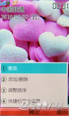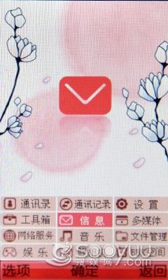 步步高i606的界面和之前我们曾经介绍过的几款步步高音乐手机没有太大的区别,进入主界面之后可以看到屏幕上方显示的是时间、日期以及运营商等信息,而在下边还有一个放满应用快捷方式的菜单栏,点击方向键的“上”之后可以左右进行选择,而且这些内容也是可以进行编辑与调整的,使用起来非常便捷。