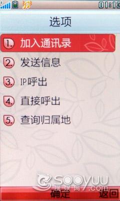 在通话方面,这款手机拨号之后可以将号码加入通讯录、发送信息、IP呼出以及查询归属地等等,而且通话的时候可以对通话内容进行录音,这也是一个非常实用的功能,步步高i606全部都涉及到了。