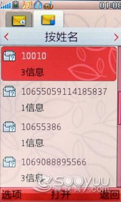 另外,信息功能中还有很多超实用功能,比如有定时短信,而另外手机的短信在显示的时候可以按照日期或者姓名进行分类,可以切换至聊天模式,让用户对之前沟通过的内容一目了然。不仅如此,i606可以将一条短信直接设置加入防火墙,相关号码的内容可以轻松屏蔽,在查看短信的时候按下星号键就可以朗读,史上绝无仅有的全面。