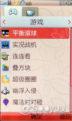 在这款手机的娱乐功能中,我们发现了很多JAVA程序,其中还有不少是利用重力感应来操作的,比如平衡滚球等游戏,在无聊的时候可以打发时间。此外本机还内置了两款炒股软件,分别是大智慧和同花顺。