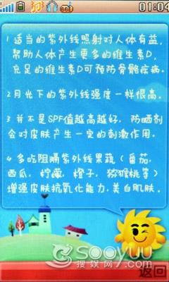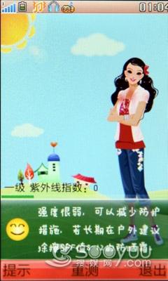 在步步高i606中还内置了一个非常适合MM们使用的特色功能,这就是UV(紫外线)检测,说到UV检测功能之前在部分夏普手机中能看到,本次步步高将这项功能招致麾下,非常不错。