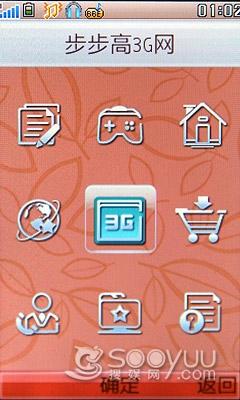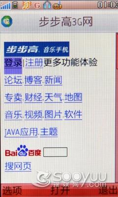 其他方面,这款手机中还内置步步高3G网应用,里面有9个选项,主要是在这里通过WAP页面的方式下载各种资源等服务内容。