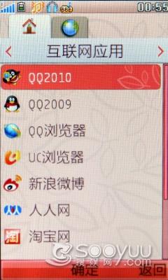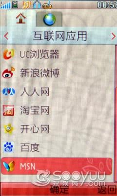 步步高i606在网络方面虽然不支持3G网络以及WLAN等,但是在功能方面依然考虑非常周到,内置了很多常用的网络程序,其中也不乏大量的社交应用,比如QQ、MSN、新浪微博、人人网、开心网以及淘宝网等等。基本覆盖了热门日常生活中经常用到的内容。