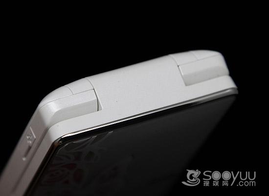 作为一款时尚翻盖手机来说,手机周边的设计应该是很简洁的。首先在步步高i606机身的顶部和底部我们就没有发现任何的按键或者接口,只是在机身底部的右下角有一个配饰小孔。
