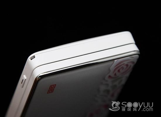 在机身正面底部的位置还有一个非常具有中国风的红色小印章标志,这在之前的青花瓷i6上也能看见,正是步步高青韵中国风系列手机的独特logo,看上去还是很漂亮的。步步高i6在手机正面就给我们带来了非常大的视觉冲击,蝴蝶鲜花这种元素运用在手机外形设计上还能保证机器看起来那么和谐唯美而一点都不“土气”,实在是非常佩服步步高的设计师。