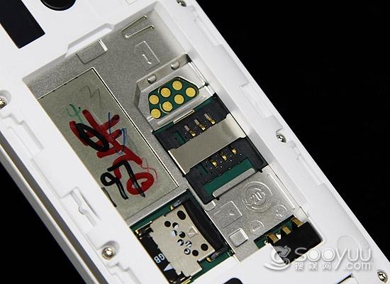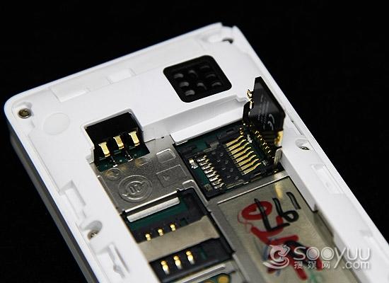取出电池之后可以看到一个SIM卡卡槽,这款手机并不支持3G网络,所以只能放入中国移动或者中国联通普通的GSM网络sim卡。
