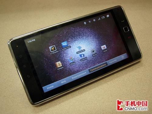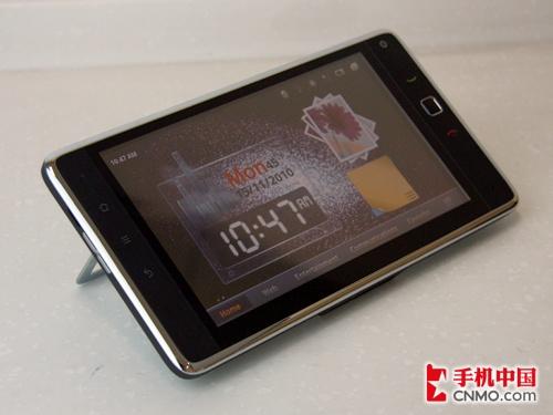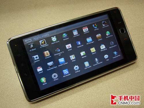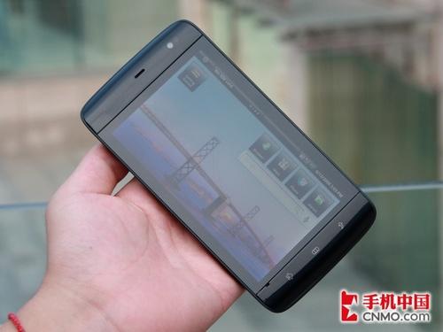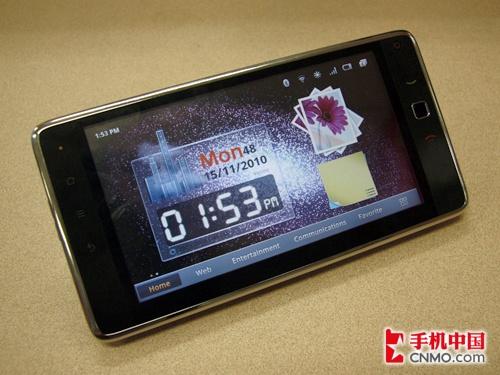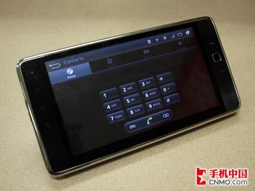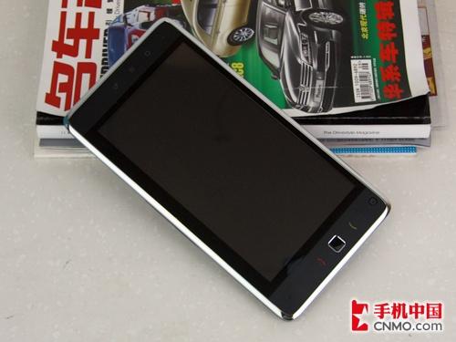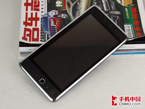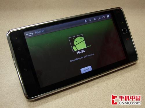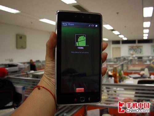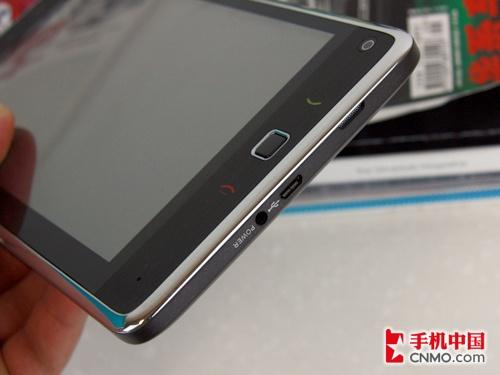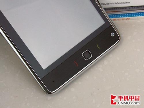 在机身正面的屏幕两侧我们可以看到分列有多个按键,本以为侧边的按键均是触控按键,不过是使用中笔者才发现,这些按键都是实体按键。左侧为Android标准的Home键、菜单键和返回键,而右侧绿色的拨号键和红色的挂机键则印证了这真的是一款手机。