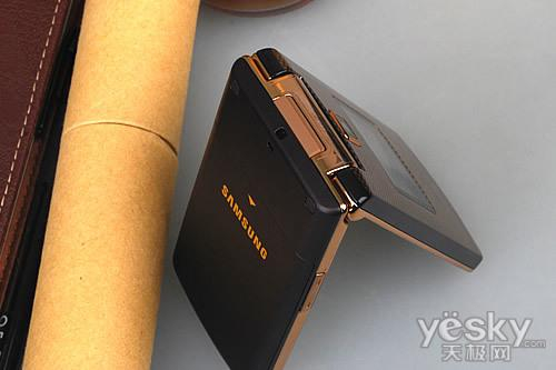 三星S6888采用目前市场上稍有的翻盖设计,因为其经典的配色和内外双屏的设计,给人以强烈的复古感觉,尤其是在机身正面棋盘式样式,让人印象深刻,金色装潢同时提升手机的整体气质,彰显尊贵,但压膜水晶的外壳,太容易吸引指纹的光顾,所以需要好好保养机身才能保证大气的感觉。