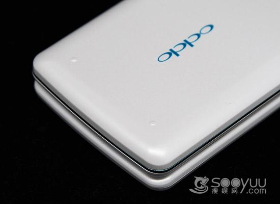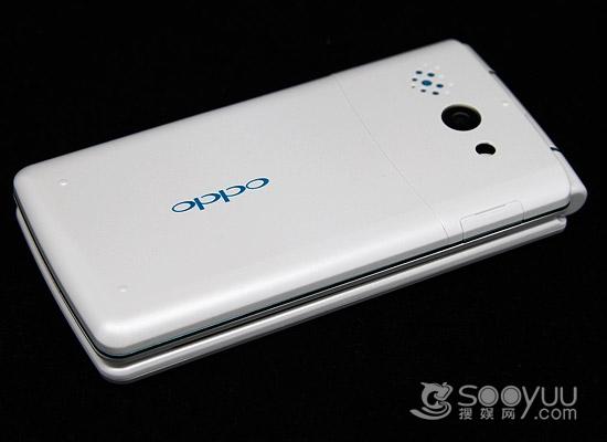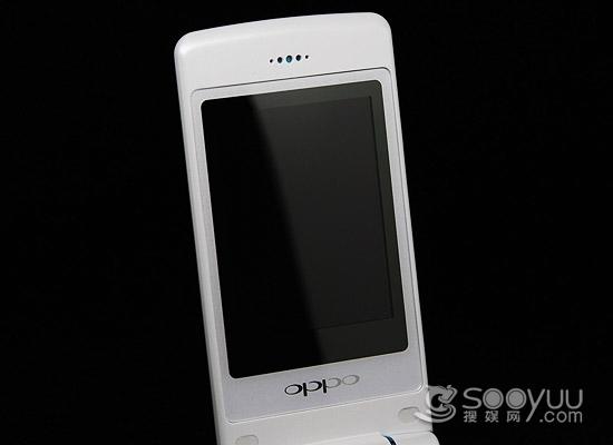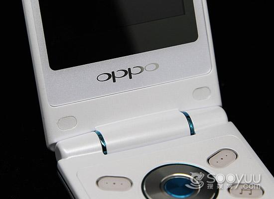 屏幕底部是OPPO的logo,在翻盖旋转轴的右侧是本机的挂饰孔,可以刮上大家喜欢的配饰。
