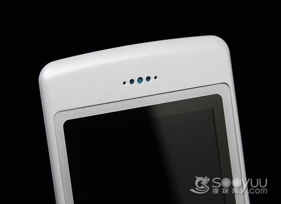 在屏幕的顶部也只有一个扬声器,由于本机不是3G手机,所以也并不支持副摄像头。