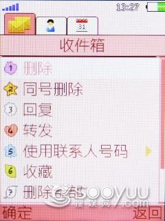 首先在信息功能中,本机支持智能拼音和笔画输入两种最常用的中文输入法,对于收到的信息可以进行同号删除和短信黑名单设置,可以有效防止骚扰,很给力的功能。