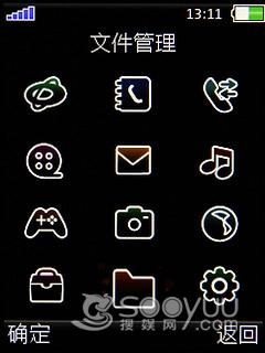 而进入主菜单之后可以发现OPPO U521内置了有三个主题,除了一个非常标准经典的4×3的界面之外还有两个动态主题。每一功能都有相应的表现,可以说是妙趣横生。另外OPPO手机还支持DIY-Desk主题编辑器,非常个性。