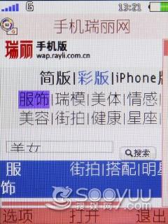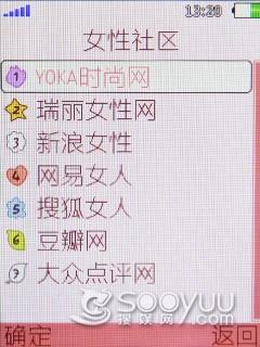 在网络功能方面,OPPO U521非常注重SNS社交,而且还内置了女性社区,里面包括有瑞丽女性网、新浪女性、网易女人等等,可以通过GPRS网络打开相应的页面。
