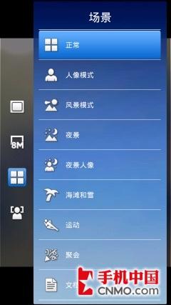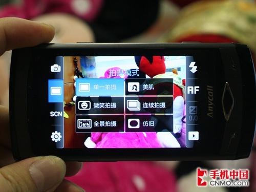 三星Wave在选项设置方面较为出色,支持多个场景模式(肖像、风景、夜间拍摄、运动、宴会等),同时也支持多种拍摄模式,例如美肌、笑脸拍摄、连拍、全景拍摄、仿旧拍摄等模式,Wave也具备了聚焦模式的调节,支持自动对焦、微距以及人脸识别功能。