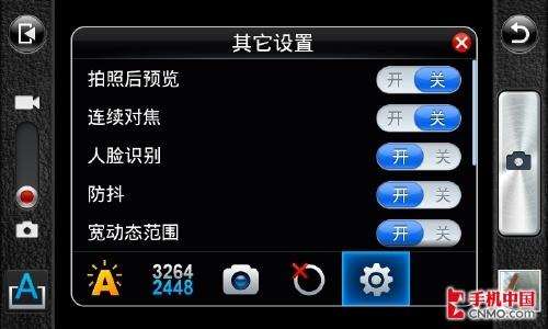 其他方面,Desire HD也拥有着定时拍照、白平衡、宽屏切换、ISO等常用的拍照设置选项。