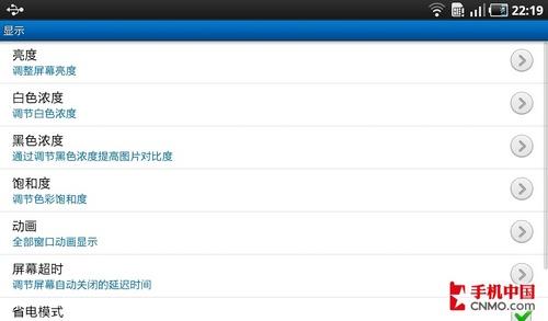 在显示设置页面中,我们可以看到很多设置选项,包括白色浓度、黑色浓度、饱和度等,可以根据自己的喜好,或者不同的环境更换不同的显示效果。