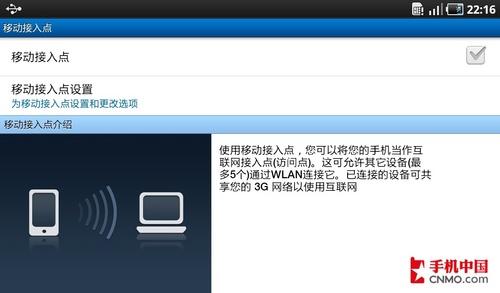 三星P1000采用的是Android 2.2版本系统,原生支持移动AP无线网络共享功能,可以让支持Wi-Fi的设备通过三星P1000的3G网络上网。