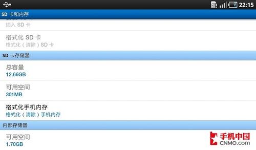 P1000内置了16GB大容量存储空间,实际显示可用12.66GB,当然,如果你感觉不够用,P1000也支持microUSB扩展卡,它就在手机卡槽的旁边。