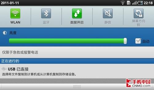 我们将三星P1000的下拉任务栏打开后,可以看到它上面固定着一些常用功能,其中最让我感到方便的是亮度调节栏,因为我在看不同的电子书,或 者看不同的网页,亦或是周围的环境发生改变,想要改变一下屏幕亮度的话,不同返回桌面、打开设置、打开显示栏、亮度栏(太麻烦了),然后再调节亮度了。