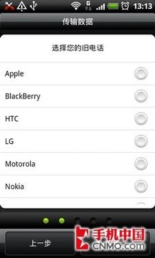 而得益于采用了全新的HTC Sense UI,HTC渴望 HD则内置了传输数据功能,该功能仅用蓝牙功能即可以轻松同步新旧手机中的重要资料。并且传输数据功能提供了众多知名手机品牌以及产品供消费者选择。