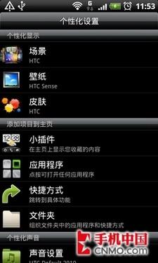 HTC渴望 HD同样采用了HTC Sense UI,不过由于HTCSense.com云服务功能目前还未正式引入中国大陆市场,因此我们在这款手机中并未看到其相关应用。不过除此之外,全新的HTC Sense UI仍旧为我们提供了丰富的个性化设置。