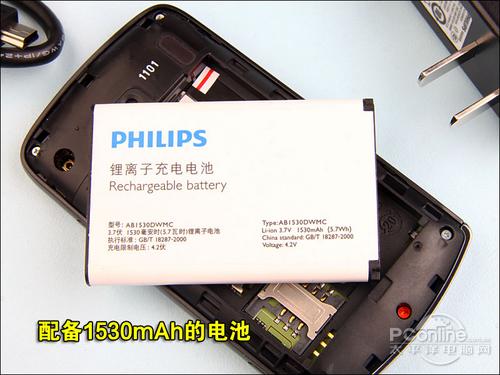 飞利浦X518机身比较小巧,却配备了1530mAh的电池,充分满足了用户对于待电时间的需求,一般情况下,三天的使用时间还是很容易达到的。