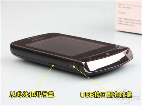 飞利浦X518采用一体式后盖,从侧面的凹槽处可以轻松的扣开后盖。同时,Mini USB接口配有胶盖,起到了一定的防尘效果。