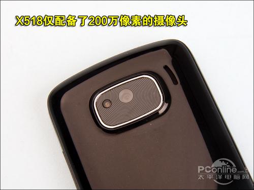 飞利浦X518仅配备了200万像素的摄像头,但配备了闪光灯,满足了最基本的拍照需求[点击这里查看拍照效果]。摄像头凸出的设计使得镜头比较容易磨损。摄像头旁边是手机配备的独立外置扬声器。