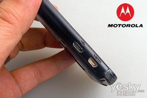 在机身四周的设计上,摩托罗拉 Atrix 4G有两个比较特别的设计,首先是在机身顶端,开机键支持指纹识别功能,乍看之下会误认为是电池背板开关,大按键与下凹式设计,大大降低了误操作出现的可能。其次是机身做侧配置的HDMI接口,与之毗邻的是micro USB可用于数据连接PC与充电器驳接,标准制式接口让用户不必担心充电器适配的问题,将机身左侧与拓展坞相接,既可实现手机与WebTop笔记本的交互。
