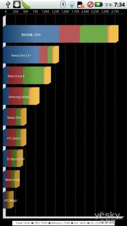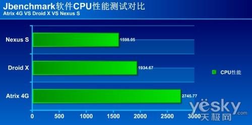 最后是在运行速度方面的表现,Tegra2处理器虽然在主频率上依然限定在1Ghz,但由于采用双核处理器构架,所以在运行速度上带给来全新体验,我们使用专业测试软件Jbenchmark测试发现, 该机与此前速度最快的摩托罗拉Droid X进行结果对比发现,Atrix 4G高出ME811将近900分的差距,相比谷歌Nexus S则有1000分的优势,从测试结果可以看出,双核Tegra2处理器更具优势。而1GB RAM内存将内存性能分值提高到一个全新的峰值,800多分的结果远远超过了竞争对手的成绩。体现在日常应用中,Atrix 4G无论在界面运行流畅度,还是在软件运行多媒体娱乐方面的表现,都可以用畅快淋漓来形容。