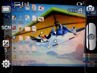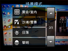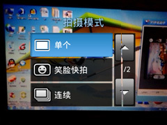 进入到拍摄界面中,左侧都是可以丰富我们拍摄的调节选项,而右侧便是照相/视频切换按钮和触摸式拍照键。三星盖世S5570手机提供了丰富的拍照模式,像笑脸快拍、连续拍摄、全景模式和添加我(可以将两张照片合称为一张,不用再PS啦)等选项。而在场景模式上,又提供风景、夜景、运动、聚会、沙滩、雪景、日落、黎明、秋色、烟火、烛光等。