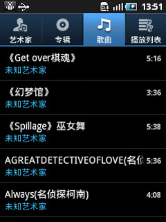 多媒体方面,首先来看三星盖世S5570的音乐表现。点击图标进入音乐功能,可以看见界面上支持艺术家、专辑、歌曲列表显示,选择一首歌曲播放,会显示出专辑封面和一些关于歌曲的基本信息。同时,手机还支持FM收音机播放功能,闲来也可在公共交通上打发时间。