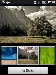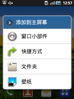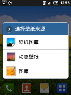 作为一款Android手机,三星盖世S5570可以将用户常用到的功能摆放在桌面上,快捷启动。同样点击功能键我们可以将窗口小部件、快捷方式和文件夹设置在主页上;壁纸一栏中,我们可以选择图库中的壁纸,附有动感的动态壁纸以及用户喜欢的图片当做手机的界面。