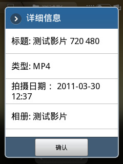 而在影视方面,根据参数了解,三星盖世S5570支持MPEG 4和3GP格式视频播放,当然通过Android播放软件可以兼容更多格式。笔者实际拷入四段相同但不同分辨率的影片进行测试,从显示页上就能看出,最上面的720P格式播放不了。而实际测试后,720×480以下分辨率的影片都可流畅运行,整体表现还是出色的。