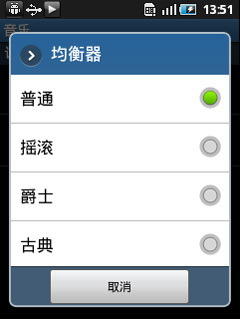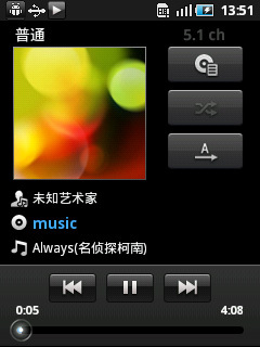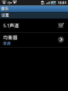 在音乐播放中,点击功能键,便可以随心设置了。三星盖世S5570除了可以调节均衡器选项,更有5.1环绕声道功能,通过勾选就可以体验到更为出色的音效。而均衡器功能上,同样支持普通、摇滚、爵士、古典、舞曲、流行、现场、音乐厅、旷野、音乐清晰度、低音增强、外化等多种选项。音乐方面的表现依旧抢眼。