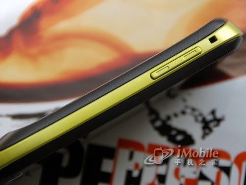 机身细节方面,我们看到左侧配置有挂饰孔,装上一些可爱的小饰件,更能突出手机的潮流定位,在它下方是音量调节按键。手机的右侧边位置,可以看见电源键,实际测试手持时我们的大拇指位置正好在此,方便使用者随时解锁进入到界面中。靠下方则是MicroSD卡槽,拆卸存储卡也同样更加便利了。