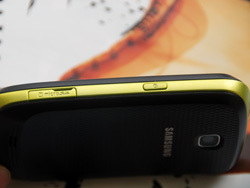 三星盖世S5570手机机身三围是110.9×60.6×12.1mm,重量仅为102克,无论是男士女士使用都非常合适。当然我们看见,在侧边的颜色搭配上,不再是银色调象征商务成熟,而是清新的苹果绿,相信年轻朋友对这样的颜色没什么抵抗力吧!