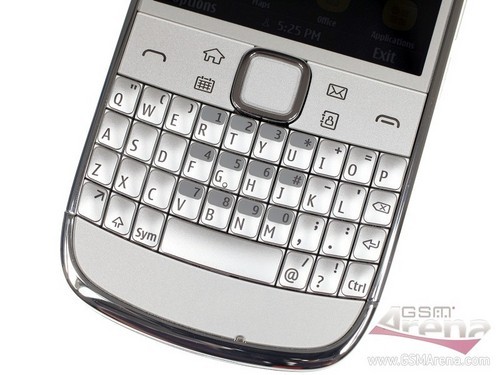 诺基亚E6功能键区取消了之前独立按键的设计,改为了整个功能键区为一个整体的平面,没有单独凸起的按键这让它看上去更加简洁。至于全键盘布局方面,则没有太大鲜明的改动,毕竟此前的诺基亚E71和E72在操控手感上已经非常出色。