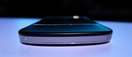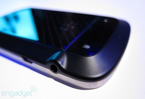 同时,超薄也是黑莓Bold 9900一大特色,从照片中我们可以看出它的机身非常的薄,厚度仅为10.5毫米(遗憾的突破了一厘米大关),而且类似于iPhone 4的金属边框可以让它看起来更有质感,但是相比于iPhone 4的9.3毫米机身来说,黑莓Bold 9900还是有一定的差距。