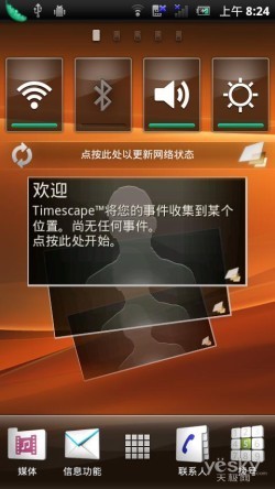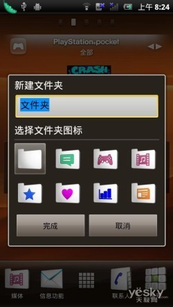 而且索尼爱立信Xperia PLAY还采用了索尼爱立信手机中一贯采用的Timescape界面,这是一个类似SNS社交信息整合的平台,将接收的来自微博,人人网,开心网等平台的 好友更新信息随时随地的在UI上显示。另外,Android 2.3带来的另外一个具有特色的功能就是创建文件夹功能,方便用户对应用进行分类,同时也是对有限的桌面空间的一个延伸和补充,操作与苹果IOS非常相似。