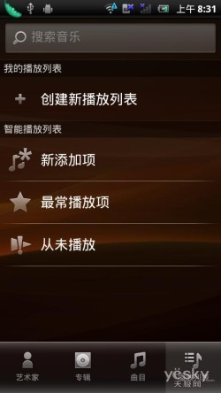 图为:索尼爱立信 Xperia PLAY 音乐菜单