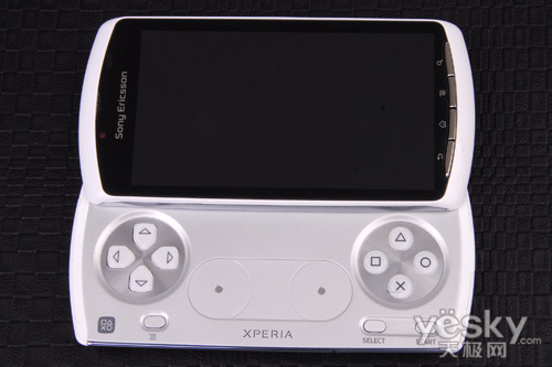 接下来介绍的就是索尼爱立信Xperia PLAY的外形设计中,众多游戏玩家最关心的一个部分了,索尼爱立信Xperia PLAY采用了侧滑全触控设计,推开屏幕之后,就露出了该机专为打游戏而设计的专用游戏键,整体来看与PSP GO十分相像。